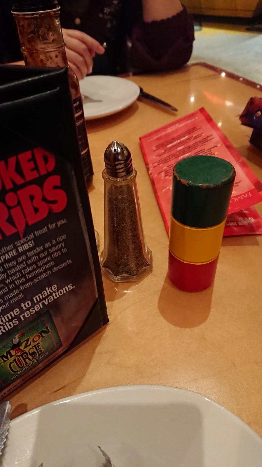 沒錯!!每個桌上都會有一隻三色的木頭,一邊是綠色,一邊是紅色,當你綠色朝上時,就代表你還吃的下,服務人員經過時就會拿著肉過來問你要不要。